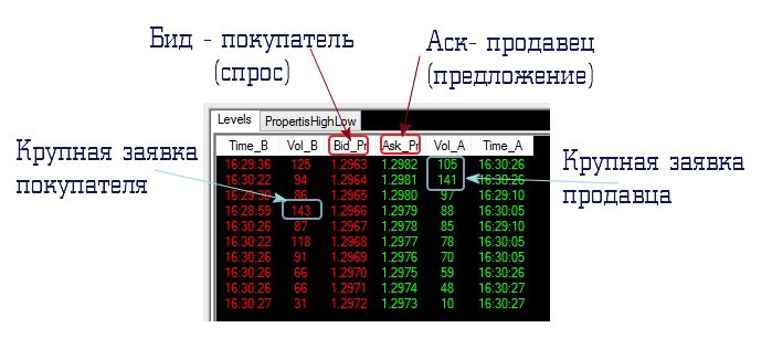 4. Торговля на разбор крупных игроков (уровни стакана).