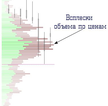 • кластеры – отображают всплески объемов в каждом баре, хорошо визуализируют место их расположения: